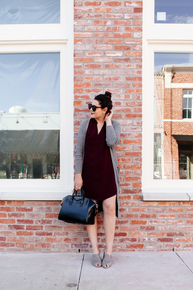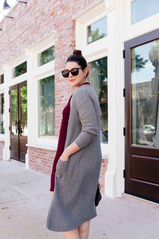 This plum color is everywhere this fall and I just can’t get enough! Loving the long cardi too.
