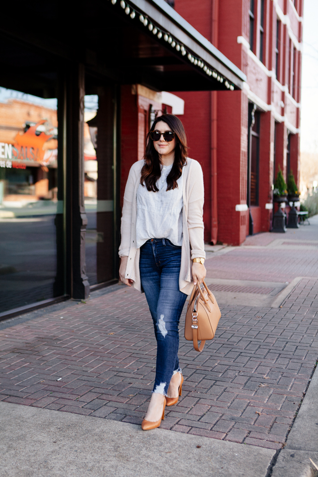 No your eyes aren’t fooling you — I am wearing yet another cardigan. I’ve got a new obsession and it’s cardigans. Of all the things to be low-key obsessed with, I choose cardigans. But hear me out: they are the perfect complement to all of my outfits and our winter has been so mild that it’s really all I need lately. If it helps a mama get up and get dressed, then I’ll take them all. (I think I may have. I don’t think there are any more cardigans for sale at Nordstrom now because I bought them all.) If you guys want, I can do a round up of my favorite one’s I’ve found this winter! And yes, I have enough to do a whole roundup. 😉