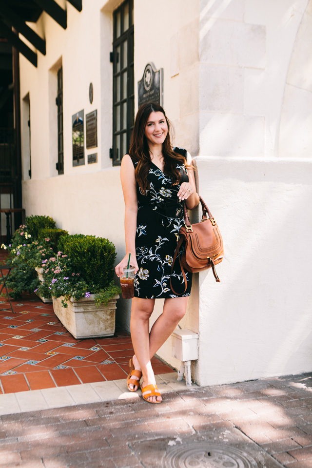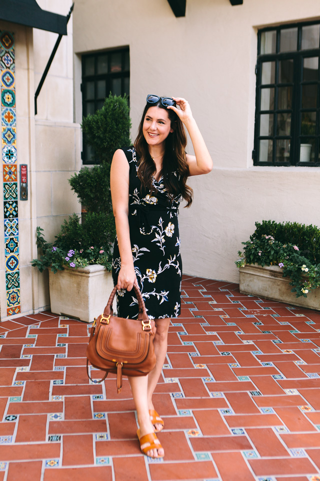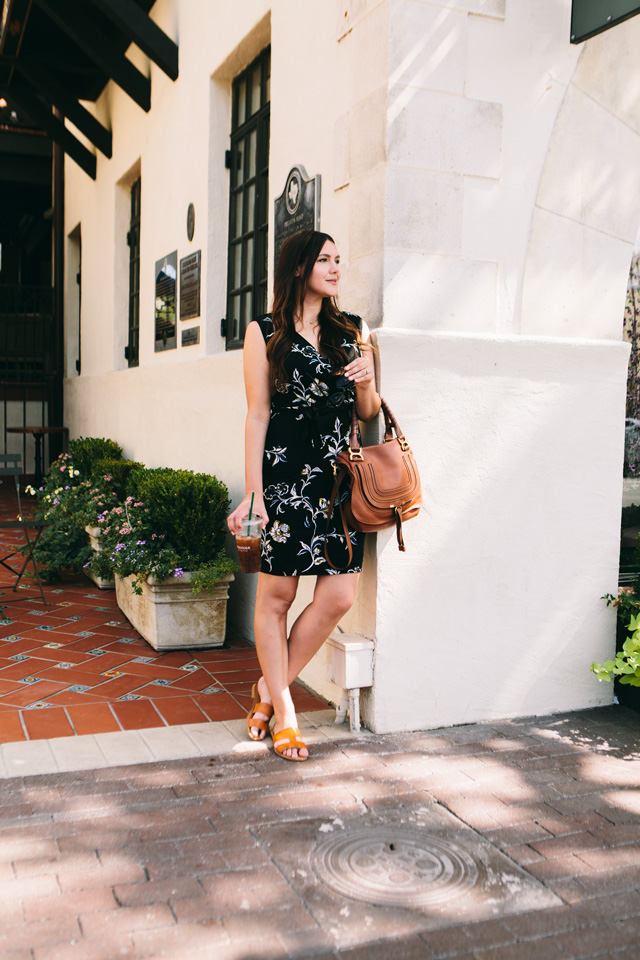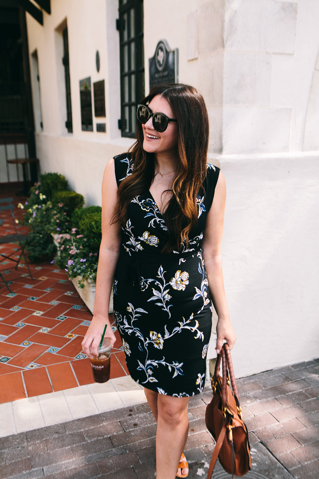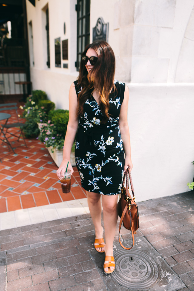Did you even see this pattern coming? Did this blow your mind? Honestly, mine was. I was not convinced that either side would look right in this fashion but you guys, it must be magic because both styles work effortlessly and it’s amazing. I can confirm that reversing this dress is as easy as putting a shirt on backward and leaving it all day long because everyone in your circle is too nice to tell you. At first, I thought for sure I’d prefer the all black side, but the pattern side sold me as I wore it a bit more casually. If you travel for work this dress should be number one in your carry-on. Toss on a classic blazer (or I love it in this mauve color with the black side of the dress!) or sleeveless trench vest over it and this look spells CEO — Chic Executive Officer. (I can see your eye roll from all the way over here but I couldn’t help myself. I have more puns but I’ll only serve up one today. It is just a Monday after all, I’ll let you ease into the week.)