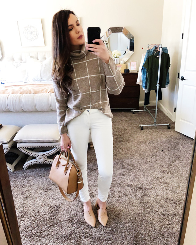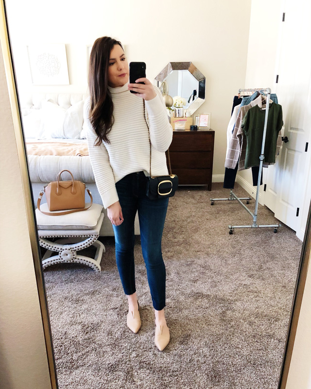 Thoughts: LOVED this sweater and kicking myself because I have the brown version of the same sweater but I like the white better! Ha! But I decided on staying with the one I already owned, but if you’re looking for a super soft sweater in ivory, this one is so nice.