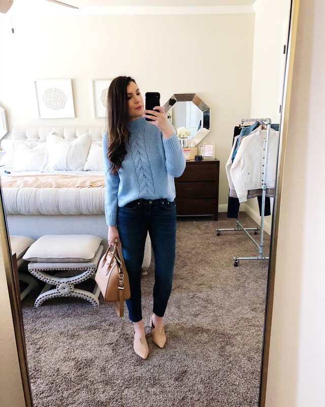 Thoughts: I so wanted to love this sweater and I have to say it looks 100% better in this mirror selfie than it did in person. (Or so I thought.) It was just a tad bit bulky and for that I didn’t love it. But I love the idea of it and the colors are spot on. Exactly how I want to dress this winter to spring.