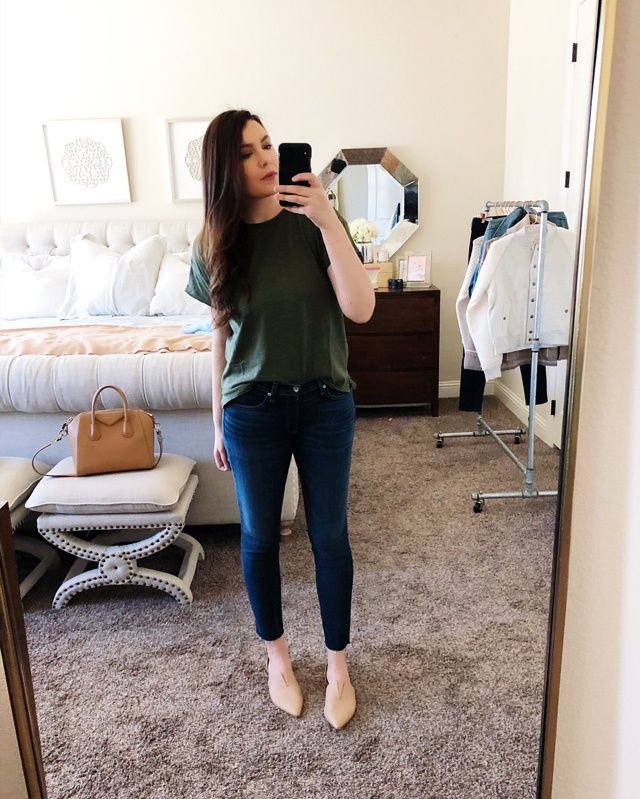 I need another purse like a hole in my head but I love how classic and simple this one is. It’s timeless and I like the size; it can fit my phone, my wallet and a couple of toys for Gemma. Mission accomplished. This pair of denim is more than what I’ve been spending on denim lately. It’s definitely the most expensive pair I’ve bought since postpartum and since I’ve been able to fit into other pairs of jeans, pre-pregnancy. But I love the fit, they are a mid-rise and not a high-rise which is basically 90% of my denim right now and I loved the ankle length for spring. In other words, I am my own best salesperson. I do love Rag & Bone denim as it lasts for years, so I felt like these were a good buy for spring. Even though it’s still winter. Poor January, it never has a chance to even be liked because all I care about is getting through it to get to spring.