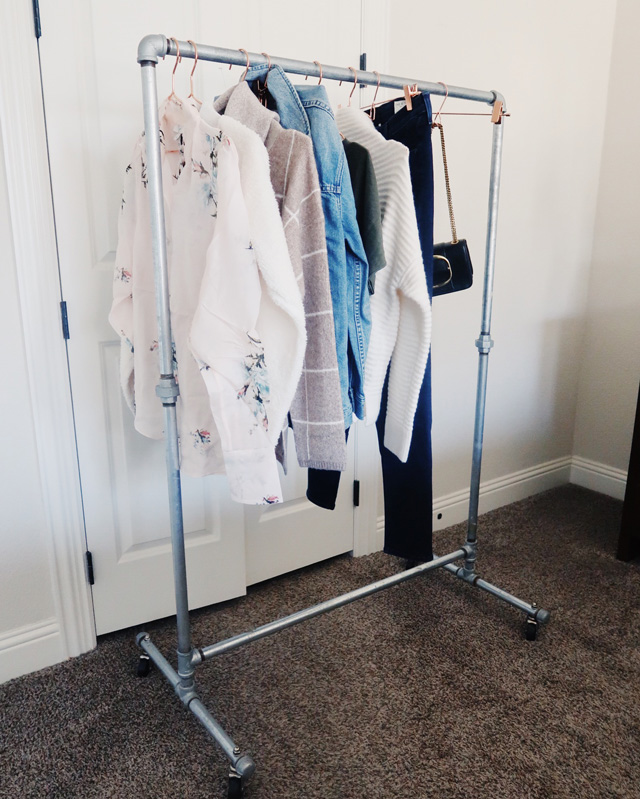 Okay, so the Trunk! This trunk was pretty light, I didn’t request anything so I think my stylist was just testing the waters. (I didn’t keep anything from my last few trunks so it was nice to have one that I really liked a lot of the items.) The only things I didn’t photograph were two pairs of shoes that were just hard no’s. I didn’t even take them out of their boxes because I knew to try them on would not change my mind. This trunk had a lot of tops and sweaters and a nice pair of jeans I didn’t want to like but I put them on and never took them off, so guess what? I kept them. Without futher ado, let’s get to the outfits I created with my trunk! (I added my own purse and white jeans and shoes to get a feel how each outfit would actually work in my closet, instead of just using the items in the trunk! I highly recommend doing this if you do any styling services.)
