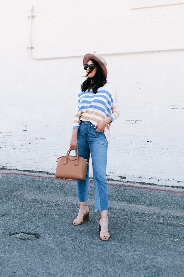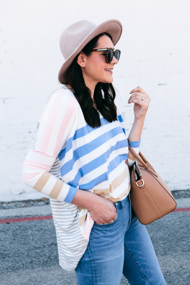 Ten new items are live in the shop today! It must be Tuesday 😉 I’ve been DYING to upload this tee from the shop because we’ve had it for a few weeks. Is it not the cutest? You know I love a striped tee (and by love I mean I am obsessed) and this one is ALL THE STRIPES. First off, look at the spring hues and second it is so slinky and fits perfectly if you’re looking for a nice loose top! You can find this under $35 tee here.