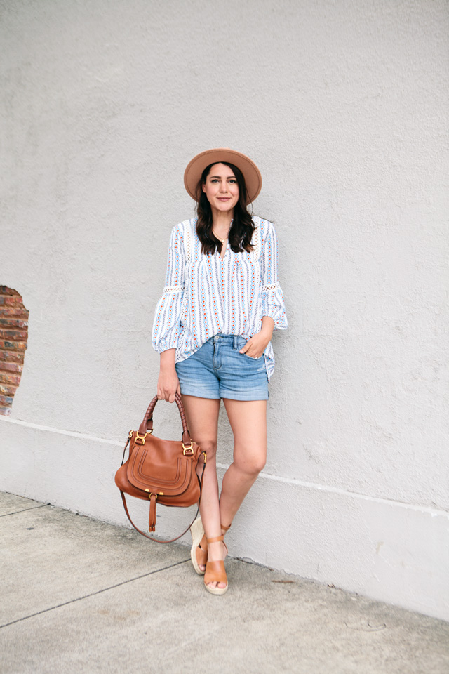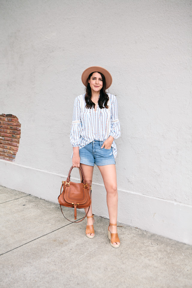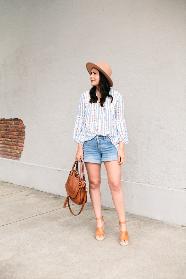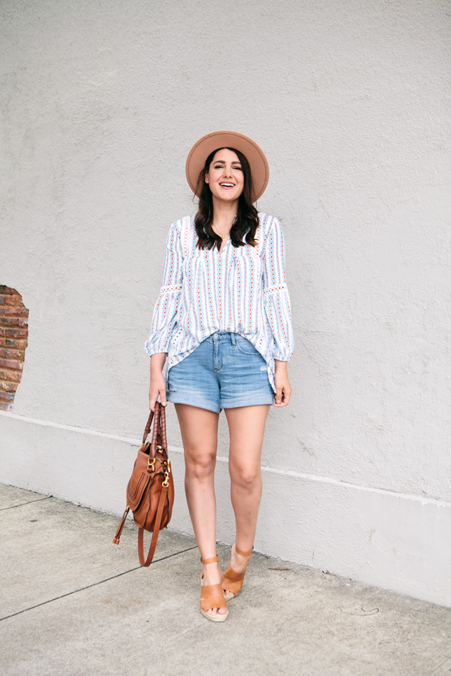Speaking of shorts, I picked these shorts up from an Anthropologie dressing room try on about a month and a half ago and I love them. They are the right amount of relaxed and fitted. I feel like denim shorts right now are very fitted and that is great if that’s your look, but I don’t know if thats MY look. You feel me? So these are a boyfriend fit and I love it. Plus this color is a nice casual shade which is all I really want to wear them as. You can find them for 20% off this weekend at Anthro! They are having a sale through Sunday so if you’ve been eyeing some things at Anthro, 20% is a nice surprise! You can find my shorts here!