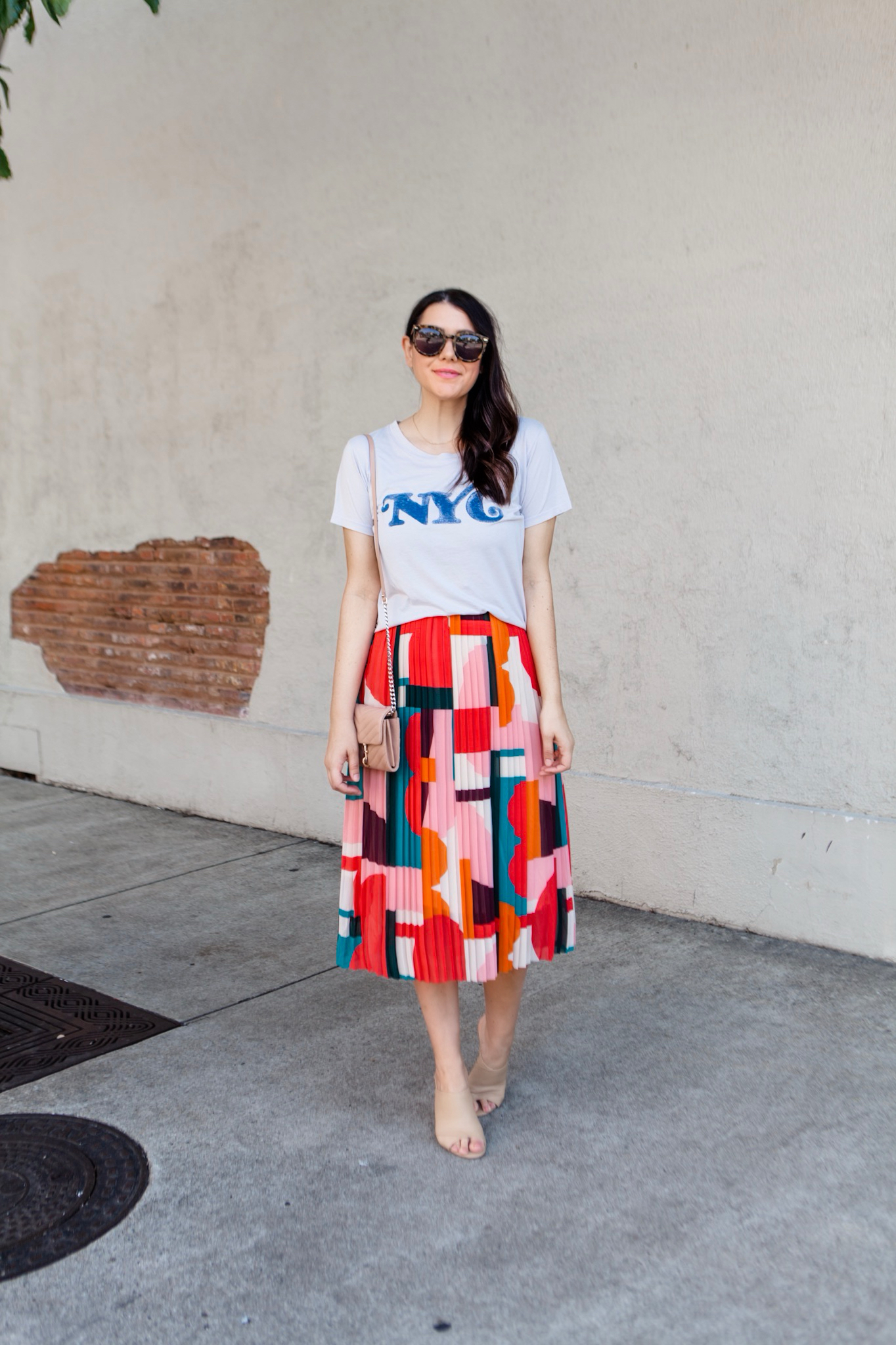 Adorethis graphic NYC tee. So cute! And loving it paired with the printed skirt. Never would think to do that!