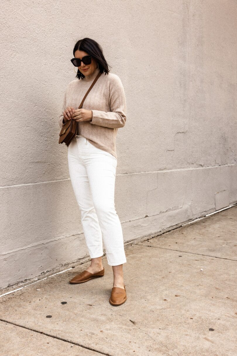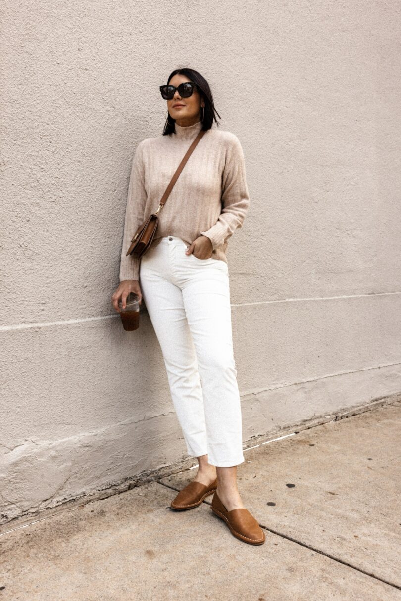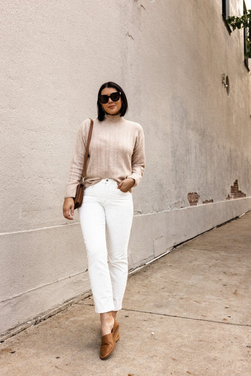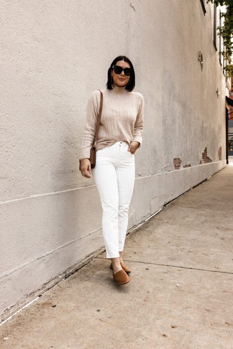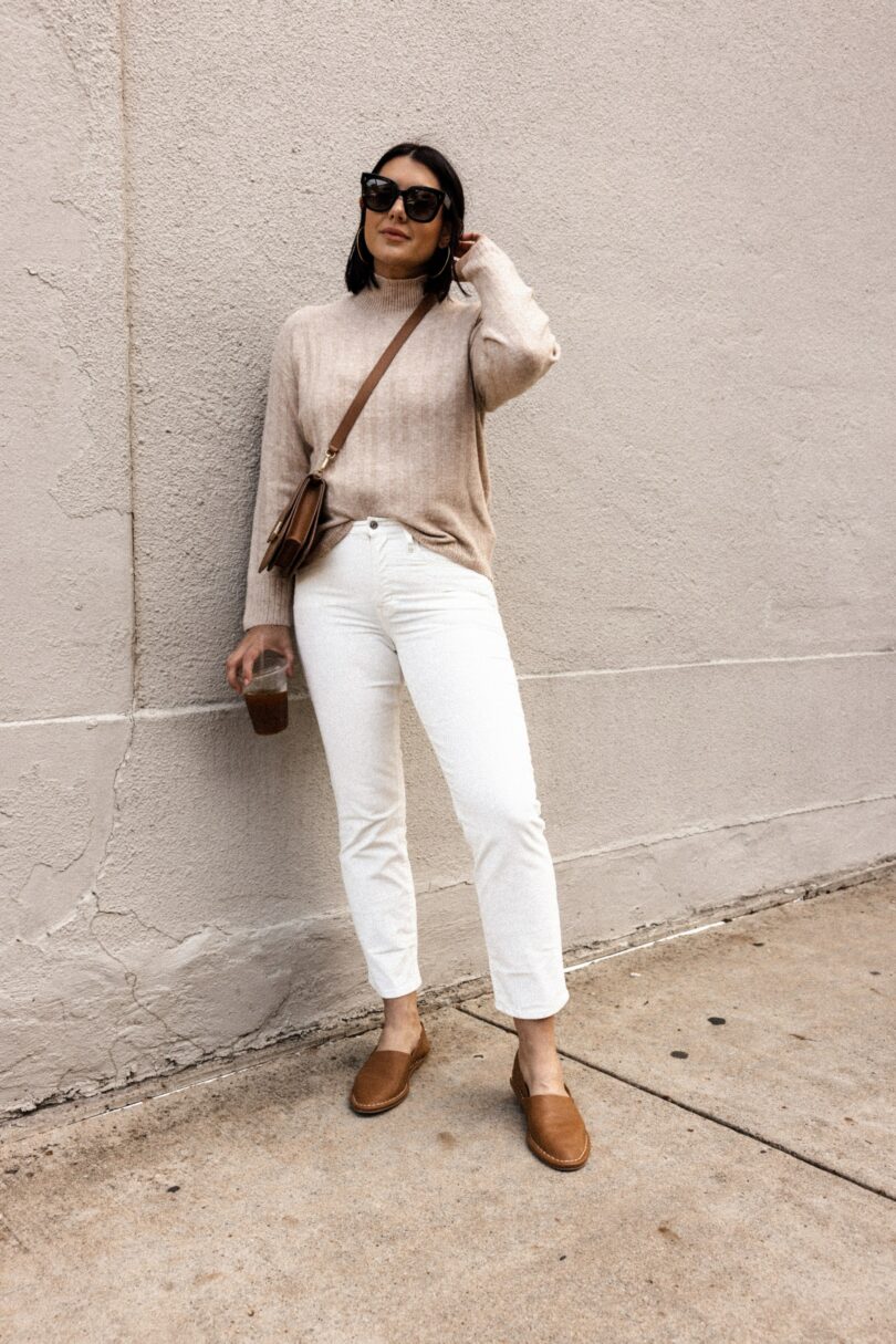 I know you might be numb at this point to all of the sales but J.Crew is 50% off today. It took absolutely everything in me to not put that in all caps. I had to push the blogger way, way down in my soul to keep those caps small. But just know that I am screaming at you through your screen. My pants and my sweater (which I absolutely 100000% recommend) is on sale! What a steal. I sized up in the pants to a 30, which I recommend for rounder waists and the sweater runs TTS, I’m in the medium.