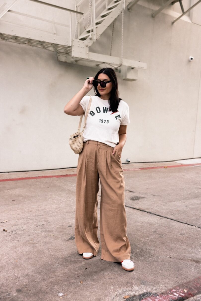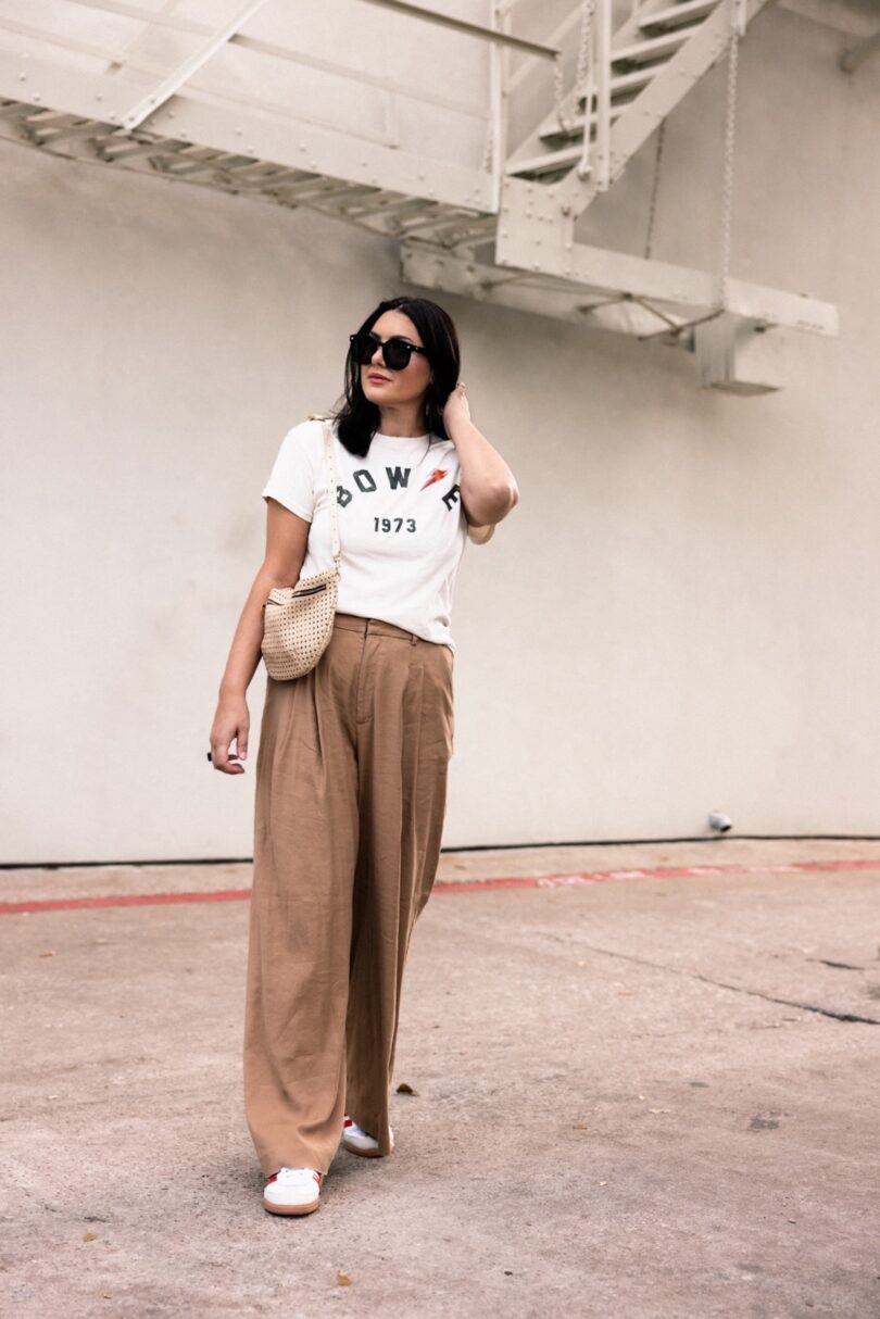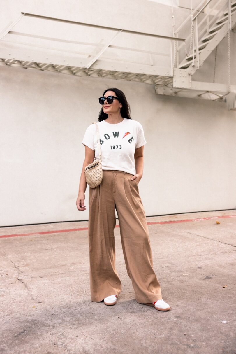 I really like this brand from Anthro for graphic tees. It’s extremely soft, like it’s been lived in, the kind of cotton I used to find in thrift stores. Just really soft and worn in, but not worn out. I am in the large, but could easily wear a medium too. This tee runs loose / oversized. It is on the pricier side so I’ve rounded up a few other graphic tees that would work well for this look. And shout out to a reader for pointing out the really good graphic tees at Abercrombie! I’ve also culled a few from Target as well. Check them out below!