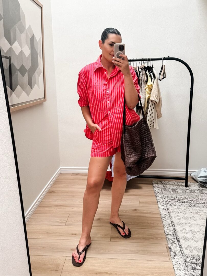 If you follow me on my LTK, you’ve seen this outfit but here it is again! This is the Gap set I bought back in May and have loved wearing. I’ve been wearing it to the aforementioned pool as a cover up as well. It’s currently sitting in the laundry basket waiting to for the laundry service to come by (jk it’s me, I’m the laundry service) but once it’s clean again, back into the weekly rotation it will go.