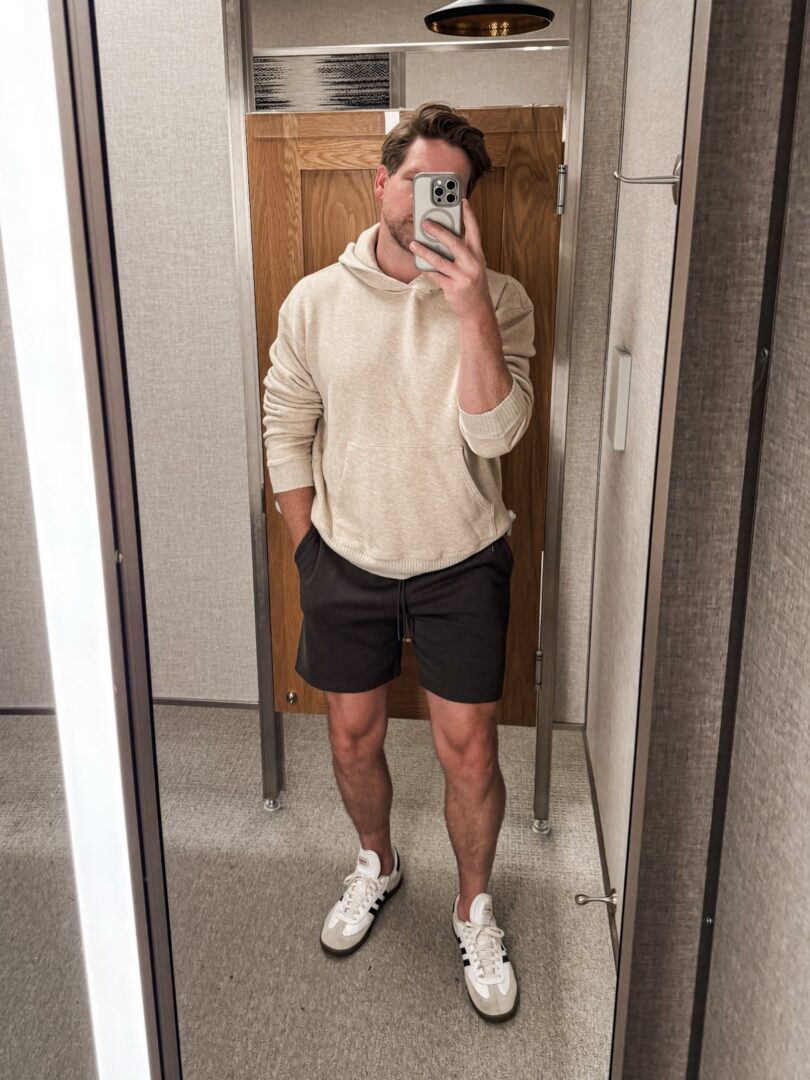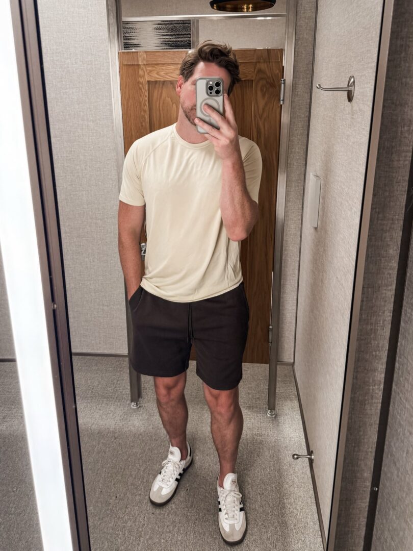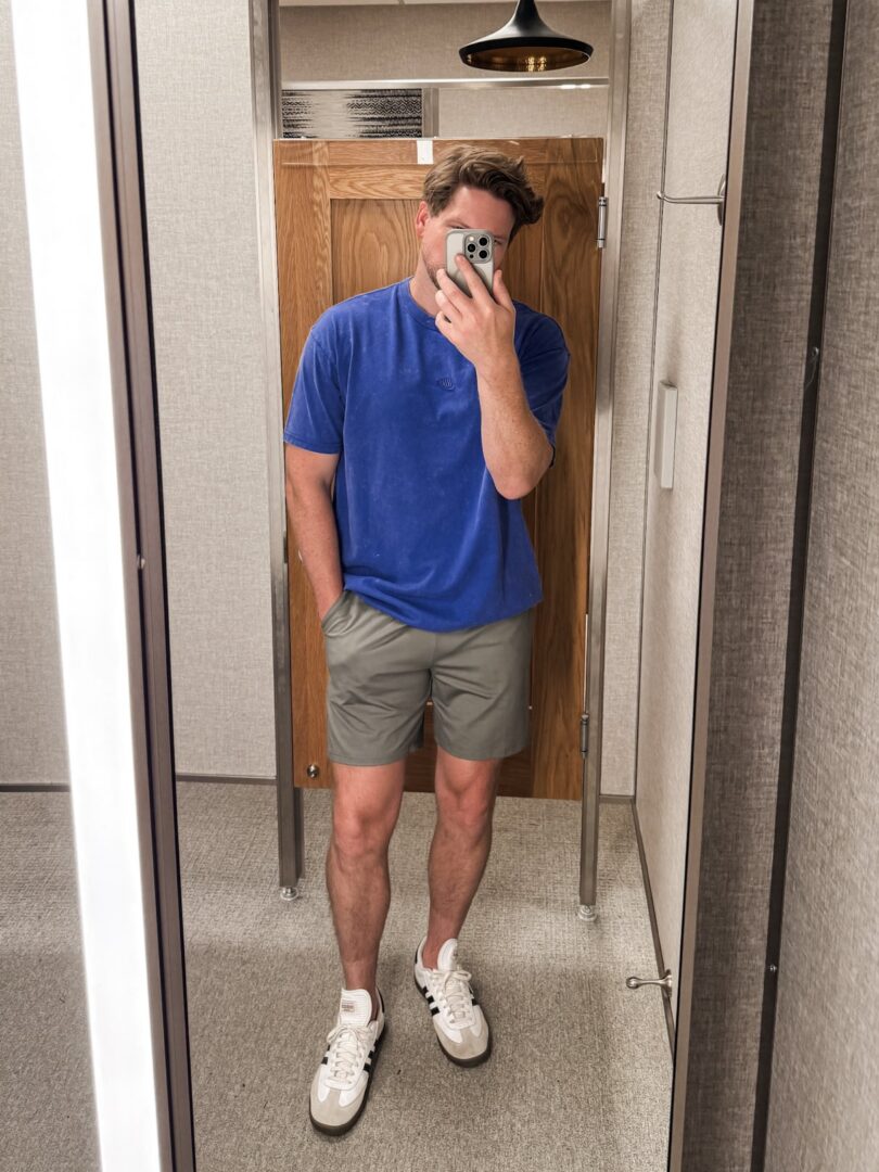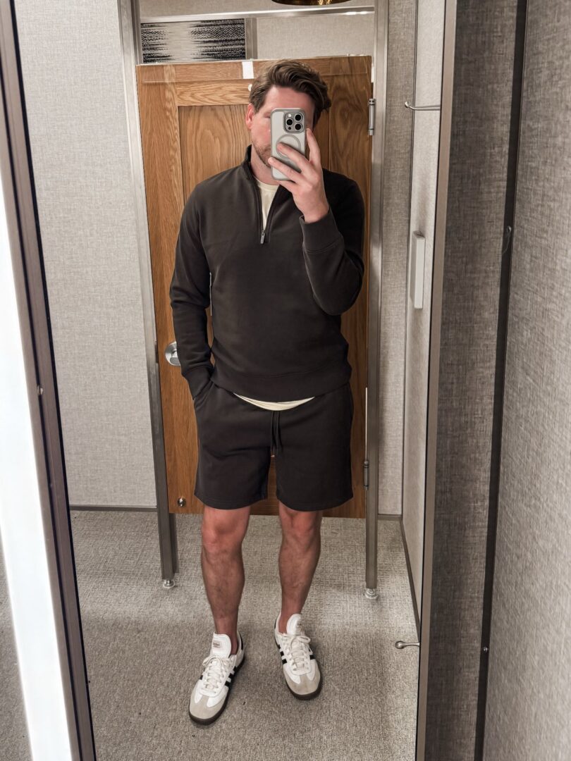 The Nordstrom Sale has about one more week and some change left (ends August 3!) so I wanted to share some pieces that Bryan tried on and some he picked up! We looked at our local store so it wasn’t a ton of inventory / options but many of the brands he likes to shop were around. He ended up finding some more casual pieces and gym essentials, not so much things for work, but that’s ok! He couldn’t find any denim he loved so we passed on that as well as outerwear, too.