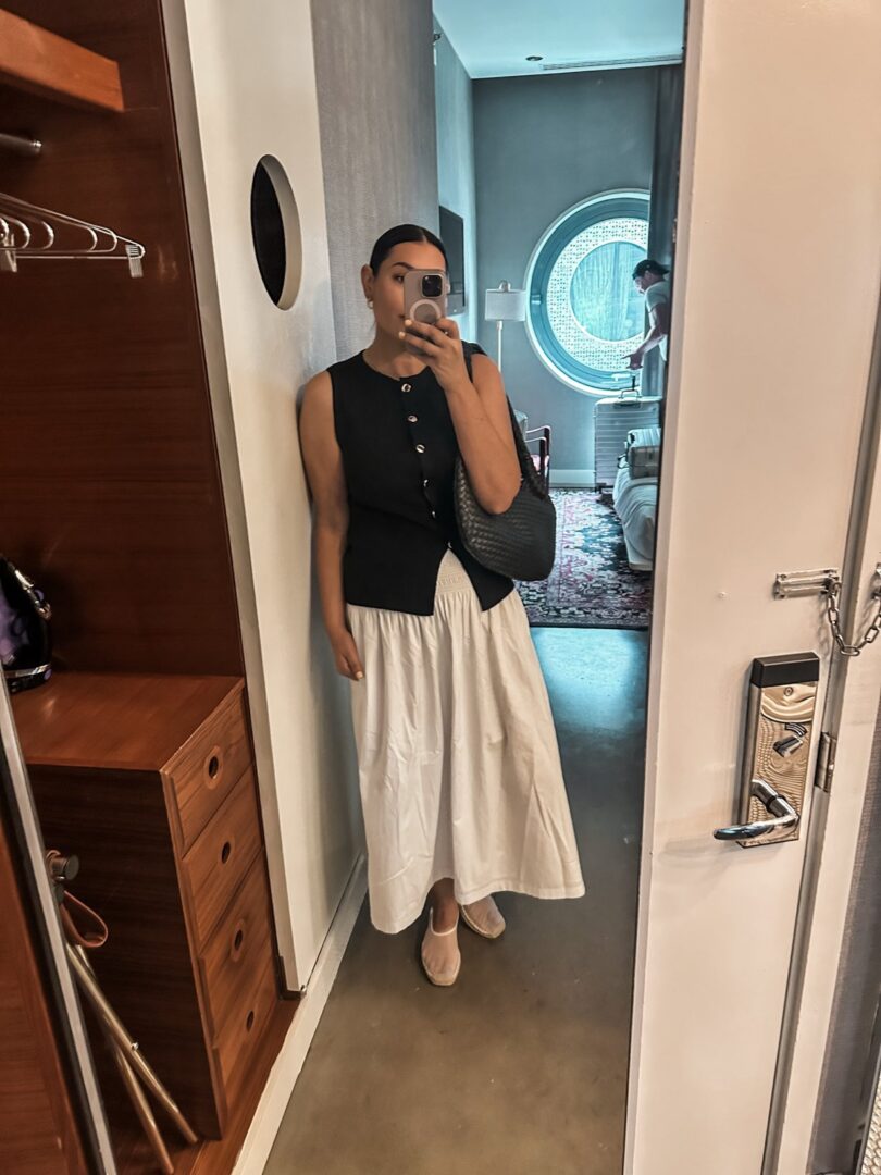 Love this Madewell skirt so much — it’s just plain comfortable. Yes it was a touch wrinkly from the suitcase but I didn’t really mind. I ended up traveling back in this outfit and it was comfortable all day long. I’m in the medium, runs generously. Find it here.