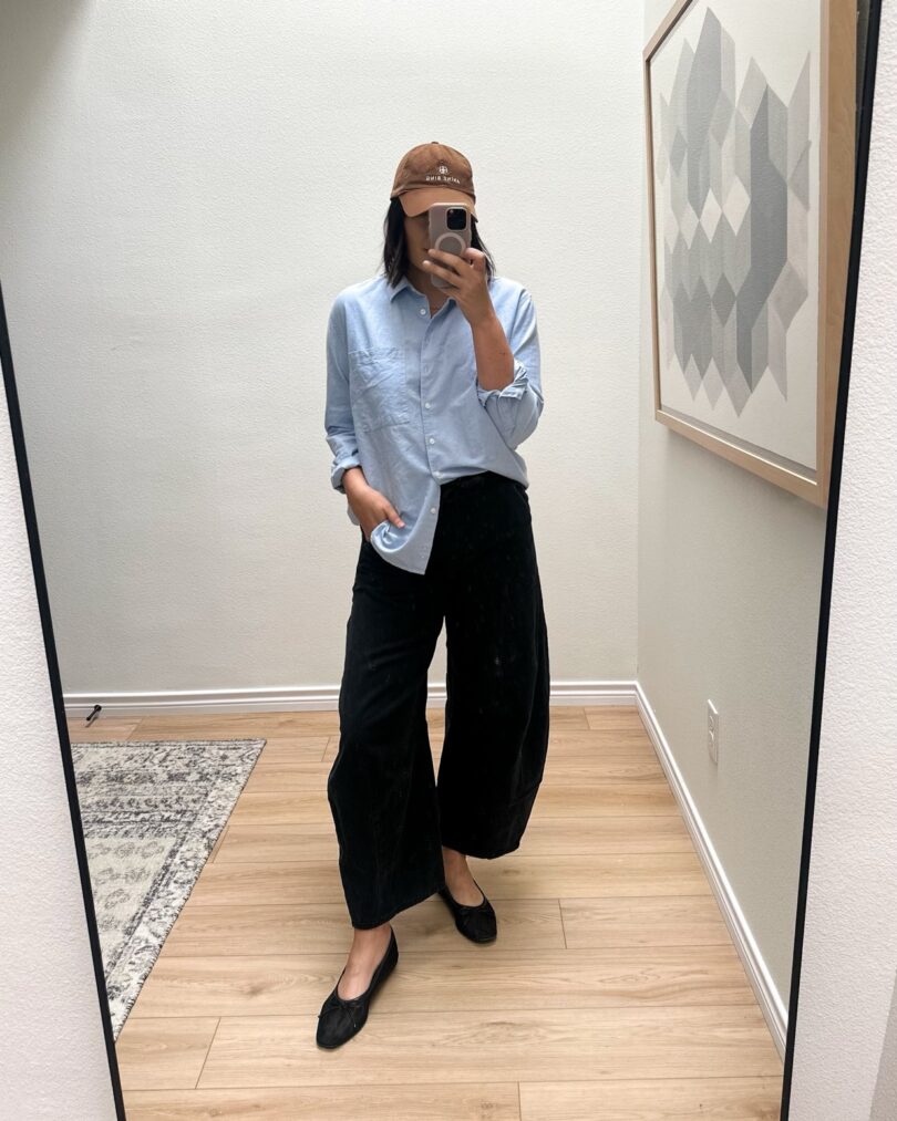 I’ve gotten more wear out of this Quince Poplin than I ever thought I would to be honest. I bought it thinking I needed more staple pieces and boy, was I right. I would absolutely recommend this one from Quince. It’s a thicker poplin, keeps its shape and fits relaxed. I am in the medium and it runs looser, so if you are smaller up top you could go down one size. Find it here.