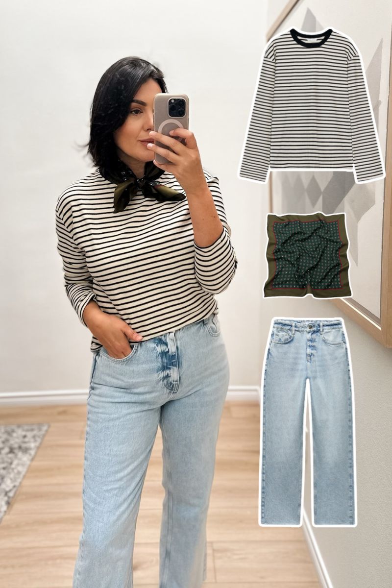 Striped Tee + Silk Scarf