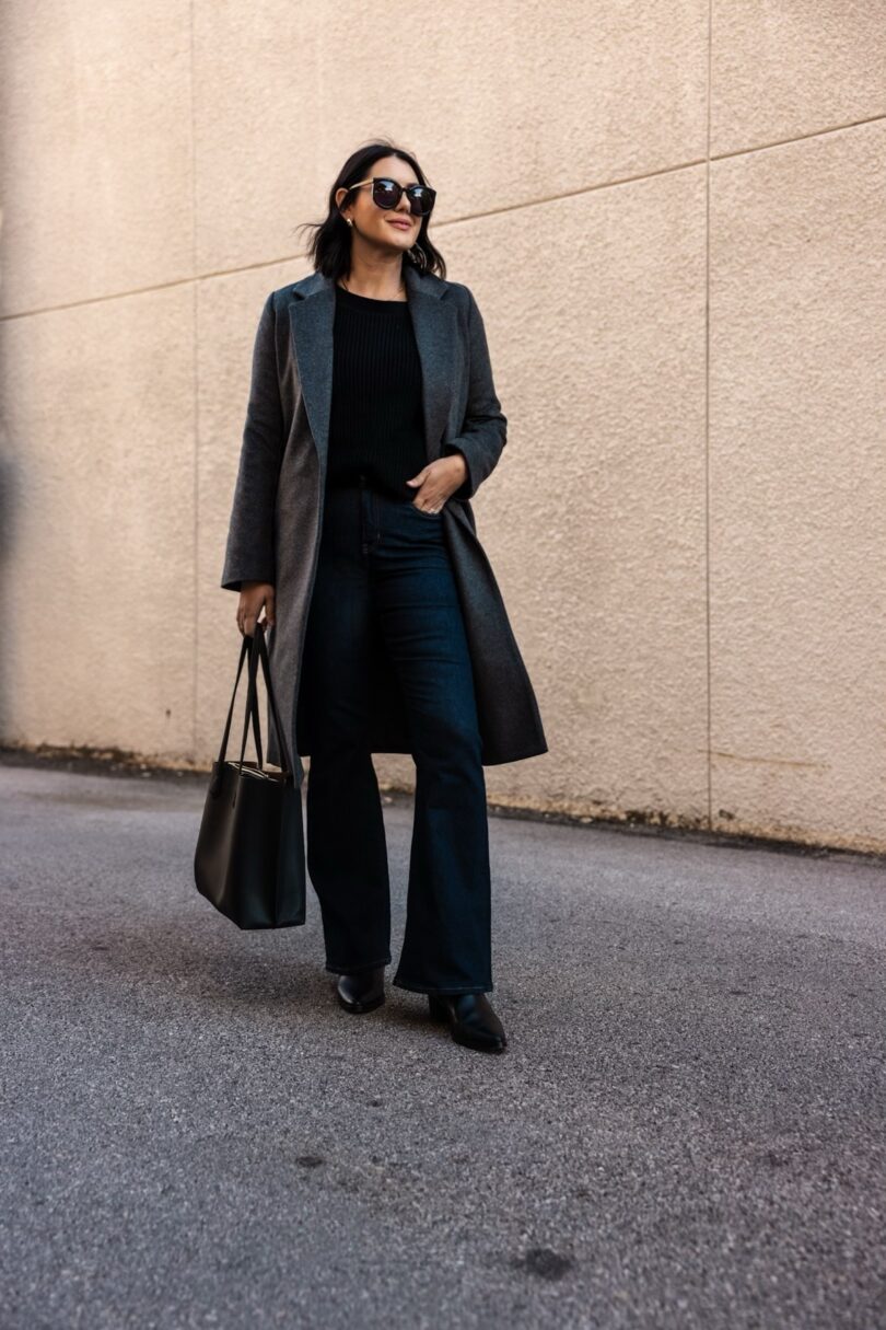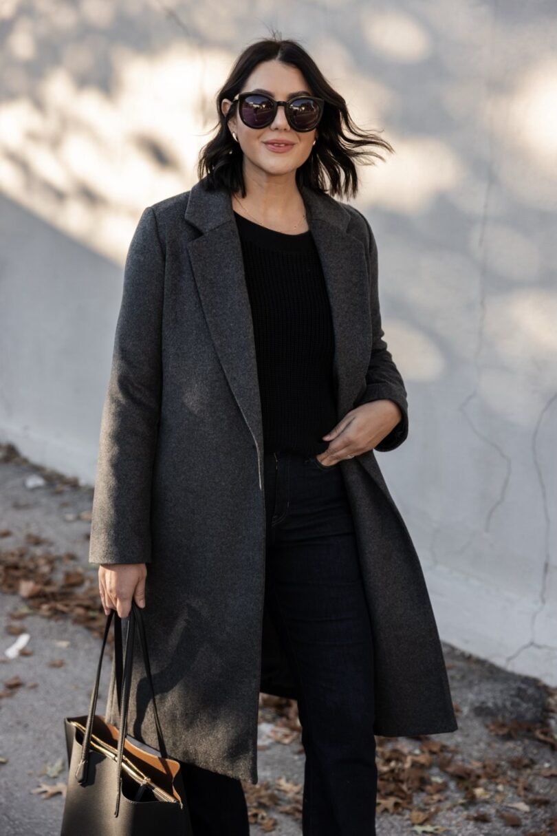We are just almost to coat season and I for one love a layer, especially a coat. I really believe a coat can turn an outfit around and so I have quite a few for different outfits. However, I did not have a charcoal grey coat, so when Quince reached out to gift one, I jumped on the opportunity. (This coat is gifted but this review isn’t paid or sponsored in any way.)