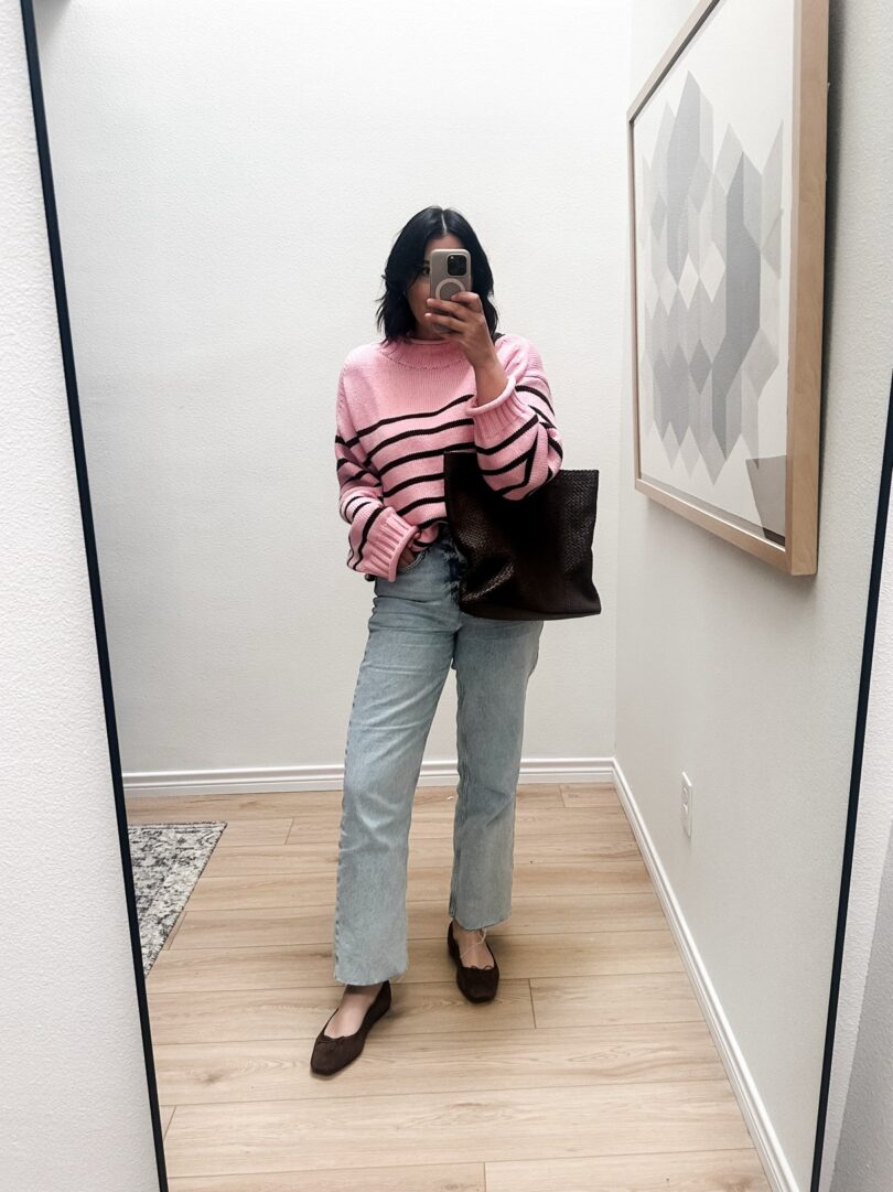 J.CREW SWEATER | ZARA JEANS | J.CREW FLATS | QUINCE Leather BAG