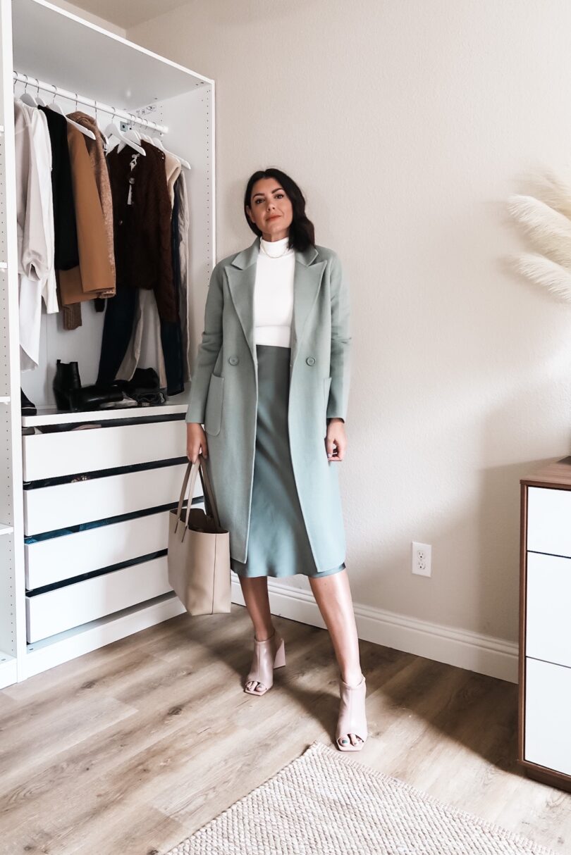 silk skirt + matching coat + turtleneck top