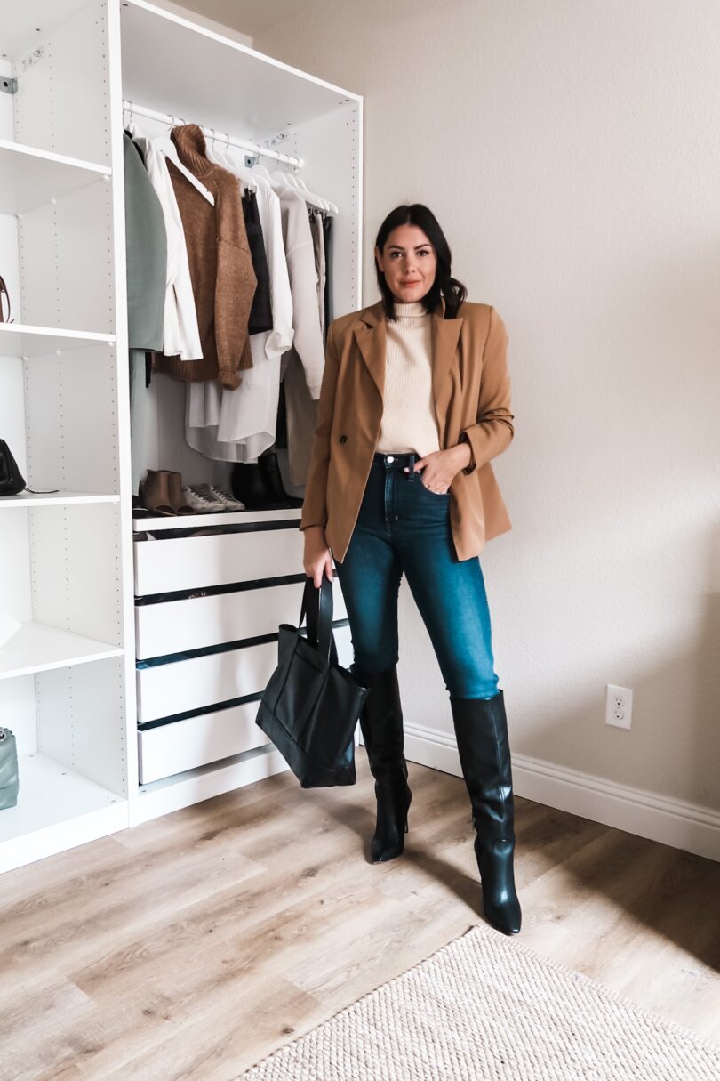blazer + mock neck sweater + OTK Boots