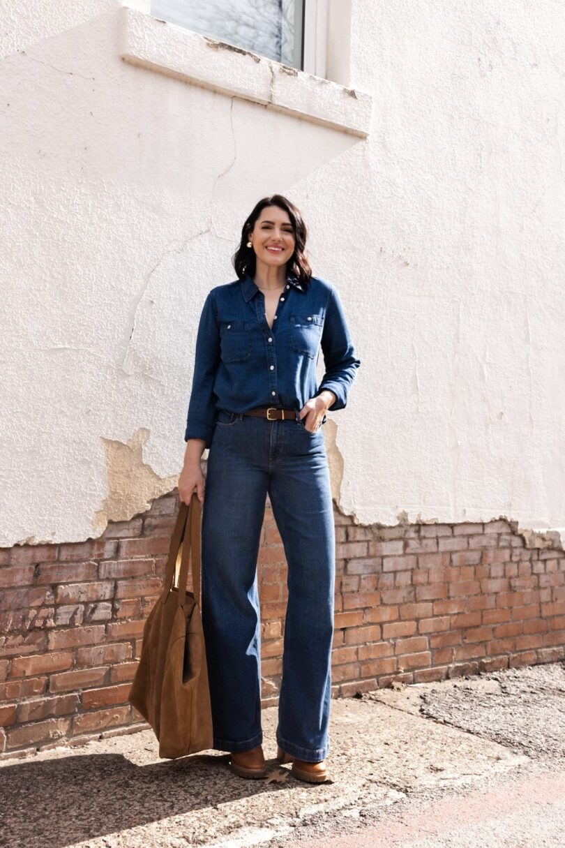 I can’t explain it but every year, right around this time, my double denim clock goes off. I’m not even kidding. (See this phenom in the years of 2024, 2023 for reference) So here in 2026, checking it off my list, I suppose. You see I ordered this shirt from this month’s Nuuly and realized it worked PERFECTLY with these Gap jeans. This outfit is the exact reason I like Nuuly, especially in slower style months. But I’ve thought about this whole double denim thing — why does the denim on denim alert go off in January for me? And after about 5 minutes of introspection, I think I know why.