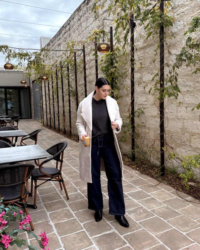 Quince Coat | Avara Jeans | Quince Sweater | Madewell Boots
